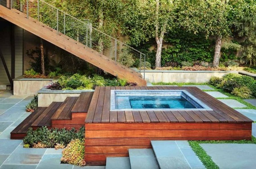 - Comfort: Een houten terras om uw spa of jacuzzi is comfortabel om op te lopen, zelfs op blote voeten, en blijft koel in de zomer.